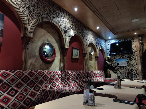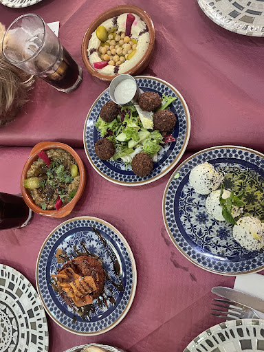 Wow, what can I say. This place was and is absolutely amazing. Not only was the atmosphere just perfect, but the food was exceptional. The decor inside was very fitting to the culture and the music that was playing was not playing exceptionally loud, but it set the mood just right Wehought we would try some dishes that we have not tried before. We liked this place so much that we had to go twice during our trip to Seville. We ordered the hummus, which is a go to of ours, but thought we would try their version of it. It wasn't overly powerful it flavor, but when you mixed everything together you definitely got just enough taste to go with the naan bread that was given with it. They were kind enough to refill the naan after we got done with our first helping. There was enough hummus to go around the table a few times. Another appetizer we tried was the makdous, which consisted of baby eggplant stuffed with nuts and garlic. Boy, this dish had so many flavors wrapped in to one. The flavors and consistency of the food with a little bit of added crunch from the nuts was not powerful, but bold! We had three different entrees, first, qalaia (lamb meat bathed in natural tomato sauce with rice), second, sayieu (lamb meat and vegetables with charcoal), and third, tajin (stew of veal, apricots, plums, nuts and sesame). There were no complaints for any of the foods we had. Each and every dish was different, of course, in their own way. The lamb and veal was cooked perfectly. The meats were so tender and it fell off the bone. The seasoning of different herbs and spices were spot on. The vegetables were cooked perfectly that they still had a bit of crunch to it. I couldn't speak more highly for the food. And for the staff, big ups to you guys. You were all do pleasant and wonderful. You were always so helpful and always had a smile on your faces. They definitely helped you answer your question and helped with suggestions to your liking. Food was priced fairly for the food. I did not think the food was overpriced at all. Overall, this was quite the experience, as you could tell! Thank you very much! Highly...
