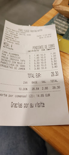 The restaurant's name translates to "Pure fire" but it was so cold inside that we had to wear our coats during dining. Too many bright lights also not helpful for creating an atmosphere which could be nice with the graffitis on the wall. Friendly and fast service. Red wine Ribera good but also served too cold. Tapas small and on the more expensive side in comparison to similar places. Taste is good and fresh, Risotto outstanding. All in all a mixed bag and they can...
