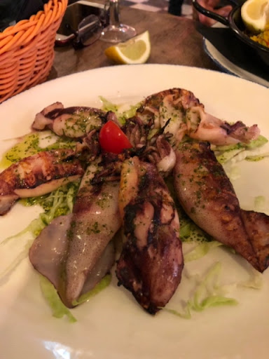 Read moreWe came straight here after spending the morning at the Sevilla Cathedral. We were able to get a table (plentiful outdoor and indoor seating) relatively quickly even though we did have to find someone inside to be seated. We ordered the peppers (these are roasted red peppers, not the small fried green peppers that we were constantly on the search for), squid (pictured, fresh and well-seasoned), paella (nothing to write home about but fine), pork cheek with fries (excellent, extremely tender and flavorful, delicious), and a pitcher of sangria. We would come back here!