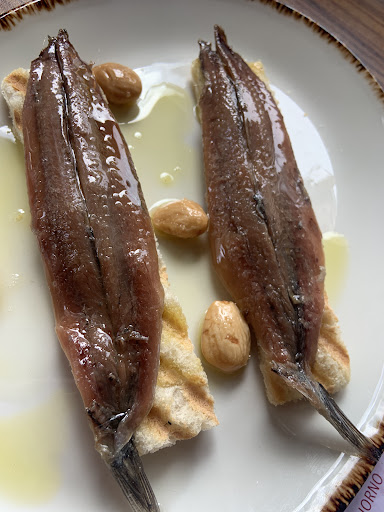 Read moreCuando estamos en Sevilla es uno de nuestros MUST!! Amamos sus anchoas tanto que hoy se dijo en la mesa… “yo no vuelvo a comer anchoas a menos que no sea aquí… es que la diferencia es… vamos!”. Hoy no llevábamos mucha hambre así que una tapa de anchoas y un flan de manitas. El primer plato… ya fue dicho antes. Y cuando llegó el segundo… pos no encontrábamos las manitas por ningún lado. Así que le dijimos al camarero quien fue dentro a preguntar. El plato estaba buenísimo, pero manitas no eran. Para nosotros era un timbal de rabo de toro… al final nos pidieron una disculpa por el error y nos regalaron un par de 🍻 Gracias Los Alcalareños! Los...
