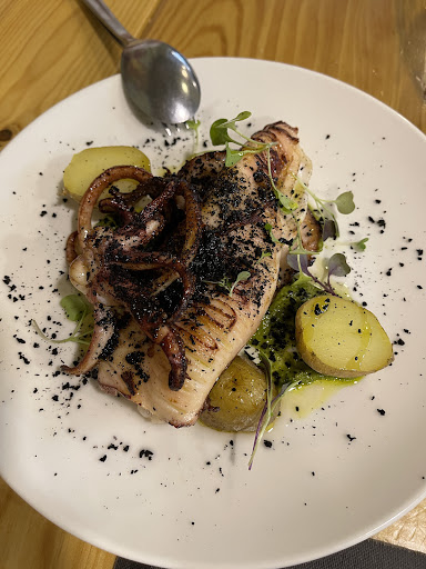 We ordered grilled squid, tomato salad, and cod and potato salad. Everything was very good and well prepared.