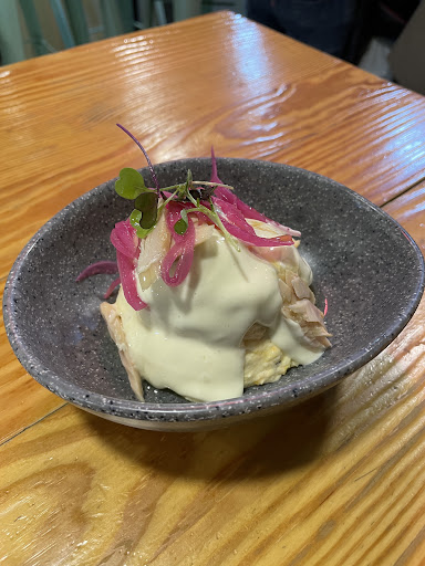 We then had the salmon with mango and the pulled beef burger. Both were very good and tasty. Depending on the dish you can choose tapas, small or large plate. We also ordered the scrambled eggs, which we didn't like, but that's a matter of taste.