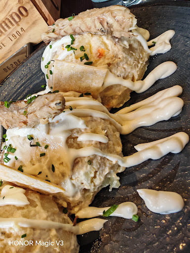 Read moreNueva decepción por varios motivos. El primero en el plato Gambones al ajillo. Hasta lo q yo sé gambones es en plural y solamente traía un gambón. Picha! Ponle aún q sea 2.... Y luego se pidieron 2 pizzas,de lo cual entiendo un poco, y os puedo decir q eran compradas de algún supermercado, lo único q han hecho a sido añadir algún topin. Y algo q sabía q iba a suceder y así fue, es el tema de la albahaca. Pizza Margarita con o sin albahaca? Lógicamente debería de llevarla por 2 motivos el primero porque así es la receta original de una margarita y sin albahaca ya NO ES UNA MARGARITA y segundo porque lo pone en su carta bien claro. No quiero hablar de lo q han tardado para traer dos pizzas del Mercadona y un revuelto de patatas paja.... Muuuucho y el local estaba medio vacío. Bueno no me extraña sinceramente, es la estrategia de la bebida. Esta te la sirven de inmediato para que te la bebas antes de la comida y así durante la misma les pidas más. Esto es pura estrategia para ganar más. Conclusión solo volvería a comer aquí bajo estás circunstancias; primera: si estoy muerto de hambre y el resto de los restaurantes de todo Sevilla estan cerrados... Segunda: Ha habido un cataclismo y este es el único restaurante q ha quedado en pie. Y tercero: una invasión alienígena se ha echo con el resto de...