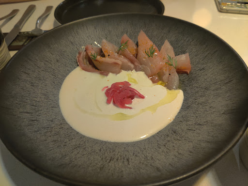 That's when we found out that this was no ordinary elevated restaurant. This team is passionate about their food and inventive menu without being pompous. They have an impressive resume with their team working at some of the highest rated restaurants in all of Europe. The oysters were our first starter, and coming from Seattle we've had very good oysters but the two at Barra Baja were the best I've ever tasted. The plating is fantastic with very cool use of gastronomy and some chemistry magic but unlike some Instagram only places, the quality of the food was even more well done than the spectacular plating. Starting with cava and then letting the very talented owner recommend our remaining wine to pair with the other dishes. All were fantastic but another can't miss highlight is the bone marrow carpaccio!
