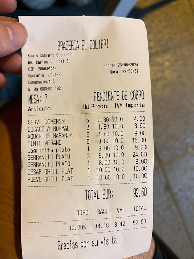 Read moreLlegamos y le preguntamos al camarero si tenían cosas sin gluten y parecía que le habíamos hablado en Japonés. Tras dejarlo por imposible, entramos a hablar con el cocinero y este se enteraba menos aún que el otro. Tras desistir decidimos pedir un pollo entero al carbón para compartir y que pusiera las patatas a parte (eso le creo cortocircuito) decía que las patatas y el pollo se ponían separados por una línea invisible en el mismo plato, volvimos a desistir. Pedimos una botella de vino después de abrirla poniendosela en la axila para conseguirlo, nos la puso en la mesa. Cómo hacía calor le pedimos una cubitera para que se mantuviera frío, dijo que no tenía pero que iba a apañar algo. Nos trajo el bowl (en el cuál tenía las naranjas) con hielo. Tras esperar un rato nos trajo una tapa de pechuga de pollo con patatas fritas en aceite de alquitrán, le dijimos que habíamos pedido un pollo entero y nos dijo que no tenía. Que había traído una tapa (que teníamos que compartir tres personas). Locura total. Le pedimos que nos cobrará la bebida y que se llevará la tapa de pollo y cancelara el resto del pedido. Encima se indignó....