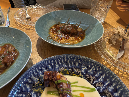 Read morePretty good tapas, maybe a bit pricey but still good. Just got here from Madrid, pretty good train ride. Got some studying done. Maybe good nap, don’t let my mom know because she didn’t want me to nap on the train. The food was great. Small bites, definitely small but still good. Good quality, felt the Spanish in the food you know. Thought the octopus was alright. Risotto was a little too sweet, had a strange flavor. Cheese was average. Overall decent flavors and food, but portions and prices were a little disappointing. Love Sevilla so far, cool palaces or whatever. My beli gave it 5.6 but I give it more like a 6.1. Great food but portions and prices...