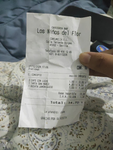 Read moreFui antes de ayer con mi amiga para merendar antes de volvernos a Málaga, nos pedimos una porción de tarta dos cafés y yo pedí un pitufo mixto, que para quien no lo sepa (y me parece increíble tener que explicarle esto a un hostelero) es un bocadillo de tamaño mediano tostado con mantequilla, pavo en lonchas o jamón de York y queso en lonchas. Pues a esto que viene la camarera, que tenía lo mismo de simpática que de avispada la pobre y se presenta con un bocadillo que era mi brazo de grande, de jamón serrano, queso manchego y mantequilla, que en una mente normal piensas que vaya desperdicio cargarse el jamón serrano con la mantequilla, total que le intento explicar a la camarera que se ha equivocado y que lo que yo había pedido y especificado además era un bocadillo pues algo más pequeño aunque ni siquiera me queje por el tamaño de jamón de York, pavo y queso normal. La tía de malas maneras retira el bocadillo y vuelve, exactamente con el mismo bocadillo solo que habían cambiado el jamón serrano por unas lonchas de fiambre malucho que no olían ni a jamón, claro, el bocadillo ya tieso y frío como la nieve, aun con restitos de jamón debajo del pan, no había dios que se le apeteciera comerlo. Total que decido ser maja, tragarme mis palabras e intentar comerme esa suela de zapato como buenamente puedo. Pues bueno la mayor sorpresa de todas no me la llevo con la incompetencia de la camarera que me atendió sino que al mirar el ticket veo que me habían cobrado 7 señores eurazos, por el señor bocadillo (adjunto foto del ticket) en fin como pueden imaginar jamás volvería a este sitio a parte de ser bordes e incompetentes también son timadores de primera. Mi recomendación? No vayáis si no queréis llevaros una muy mala...