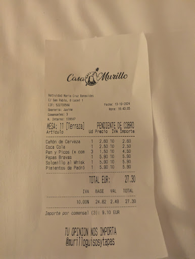 Edit: please note that no where else in Saville were we charged for the number of people at the table, we were always charged for the number of bread baskets brought to the table. Claiming that one bread basket with 2 pieces of bread was charged 3 times because there were 3 customers is ridiculous. There wasn't even enough bread for 3!!!...