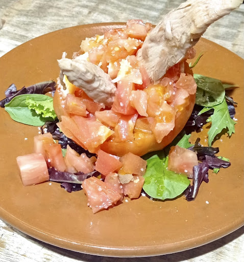 Read moreSin lugar a dudas es mi lugar favorito en el Centro de Sevilla para degustar tapas, un buen vino o incluso tomarse una copa. Ahora en verano la mejor hora es a partir de las 21, pasa una brisa súper agradable, se encienden las luces que iluminan la Iglesia de la Magdalena... La decoración es singular, a caballo entre lo vintage y lo moderno, hay ollas colgadas como lámparas, la pared conserva la piedra y las mesas son antiguas pero las sillas son modernas de diseño... Lo que más me gusta es que puedes ir cada día porque la cocina es su plato fuerte, cada día tienen sugerencias diferentes y acordes con la temporada, hoy tenían Ensalada Valdés, una mezcla de frutas y verduras con una salsa sin igual, Tomate con Melva, parece ser que traen los tomates desde la Iniesta en Albacete, creo que nunca había degustado un tomate igual. Se nota que el Chef se implica en la cocina y pasa su tiempo elaborando los platos seleccionando las mejores frutas, verduras o carnes... Los camareros son un gustazo, auténticos profesionales de la Hostelería, se nota que detrás de este negocio hay un gran equipo de gente que sabe lo que tiene que ser un Tapas Bar Premium !! Hacen también desayunos, tienen una chacina, jamón, paté de cerdo negro de Mallorca y pringá sin igual. Sin decir que el pan que parece que lo traen de Lebrija es una delicia, nada que ver con los bares del entorno. El precio es acorde, más barato que en las grandes ciudades pero defendiendo que la calidad hay que pagarla. Sin lugar a dudas me tendrán de cliente por mucho tiempo, es como...