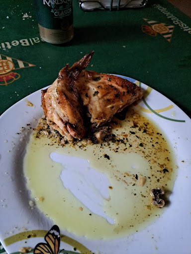 Read morePrecio: no es barato, un pollo cuesta 16 euros, cuando en otros asadores, por 11 los tienes con patatas. El medio pollo son 9, la ración de patatas 5, hablamos de precios un tanto elevado. Lugar: el local es pequeño, trata de llamar y dejarlo encargado, por qué a lo mejor, para la hora a la que vas no hay y tendrás que esperar y puede que haya afluencia de gente. #carta: la carta se ve amplia, tan solo he probado los pollos. Me faltaría quizás tener a la vista los aliños, tartas y productos de la carta, o al menos, algunos de ellos. Pollo asado: vamos a entrar en materia, el pollo es espectacular, el mejor que he probado en mi vida, tiene saber, está en su punto, no está para nada seco, jugoso. Lo sazona con una mezcla de especias. Está hecho al carbón. salsas: las salsas para el pollo, tienen 3, la normal del pollo( no pica, mezcla de especies y está muy rica), luego tienes la salsa al limón y la última es la picante ( advierto que cuando digo picante pica de cojones, avisados estáis, pero más quieres). Yo personalmente me llevo picante y normal, aparte, el pollo en su envase tiene salsa, no en cantidad pero puro vicio de sabor. envase: los pollos van en un envase que no derrama, conserva y encima puedes usarlo en el microondas y en la sartén, yo lo he calentado poniéndolo en la sartén a fuego medio-bajo, para que no se queme ni se evapore los jugos, dale tiempo y lo tendrás caliente y listo para comer.
