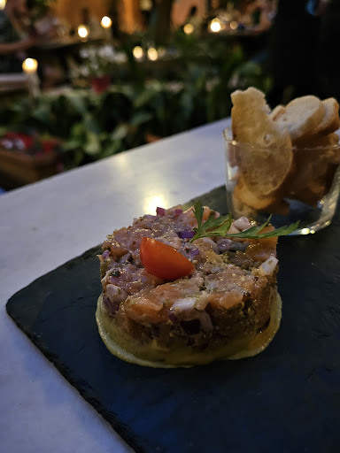 Read moreThe atmosphere here is great. I loved sitting in their little courtyard surrounded by nature. The food, on the other hand was so so. I got the seasoned tomatoes, which were actually quite good, but then I got this shrimp bean egg mound that.... was ok. It sounded interesting, so I thought I'd try. To be fair, the food on other people's plates looked quite a bit better than what I got. As far as the service, I'm not sure what was going on, but it seemed like one guy was mad at the other guy for sitting me (a solo diner) in the courtyard rather than inside, which is fine, but he chose to carry out this tiff right in front of my face, with wild gesticulations and pressured speaking. I had to laugh, but it did put me out a bit. All in all, I probably wouldn't come back, but for a decent meal in a good atmosphere right outside the Alcazar, this place...
