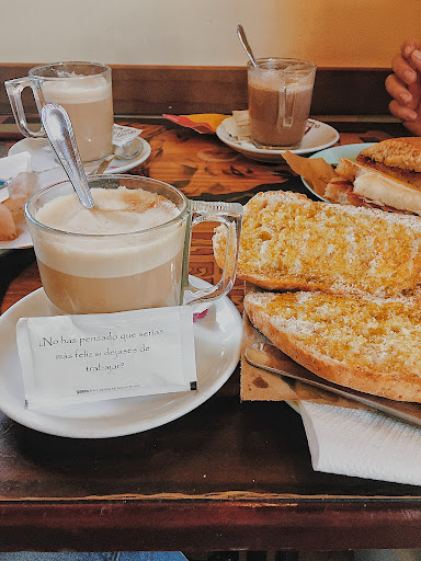 Read moreUNA GRAN DECEPCIÓN!! ESte lugar estaba cogiendo mucha fama últimamente. Lo había visto en redes sociales varias veces y todo tenía una pinta estupenda. Promocionan mucho las torrijas De diferentes sabores y ayer domingo decidí ir a merendar a este lugar ya que estamos próximos a semana santa y en Sevilla este es el dulce típico. La vitrina de los pasteles la verdad que tiene muy buena pinta pero nada más que eso. Pedimos un batido de frutas naturales de piña y coco que estaba súper ácido solo sabía a piña ácida y un regusto a zumo de naranja por lo que ya me llevé la primera decepción. Mi pareja pidió un te frío de fruta de la pasión (fruta que es amarillenta en el interior) y le pusieron un te frío de color rojo que tenía poco saber pero desde luego a fruta de la pasión nada. El último chasco y el más grande vino con el dulce. Me pedí una torrijas de manzana y canela para compartir y de torrija no tenia absolutamente nada. Entiendo que ahora se hacen creaciones modernas y que pueden tener leves modificaciones al tradicional pero esq no se parecía en absoluto a una torrija, creo que este pastelero jamás a comido torrijas en Sevilla . Para empezar era pan brioche no pan de torrijas y estaba super super seco sin mojar en nada cosa que una torrijas tradicional se moja o en leche o en vinito y se fríe. Después por fuera y la parte superior no tenía ni azúcar con canela como las torrijas de leche ni tampoco tenía miel como las torrijas de vino, únicamente un poquito de compota de manzana con un pelín a canela y que sabía bien poco a nada. FRACASO ABSOLUTO DE SITIO. Nos lo comimos porque ya estaba pedido y lo íbamos a pagar pero ya te digo que el pastel estaba para dejarlo entero, costaba trabajo tragar de seco que estaba. La próxima vez hagan el favor y no engañen a los clientes ni a los extranjeros que van a probar torrijas. Llámelo como quieras pero...