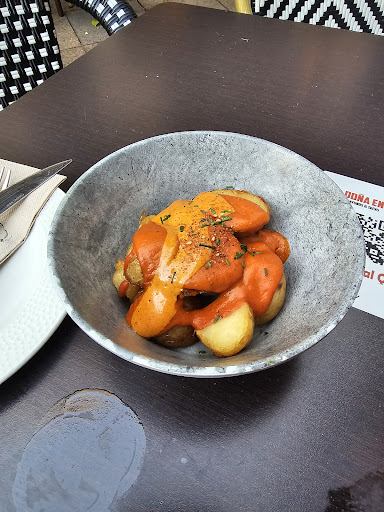 The restaurant is coffee shop like, less restaurant style; one large glass walled room, no table cloths or booths- small dessert counter. Serve was friendly and helpful. English spoken here. The cuddle fish was a served in a cardboard sleeve on a plate with a dab of sauce and lemon. The cuddle fish was smooth and a firm just how I like it. Probably about 10-12 "sticks". The sea bass (branzino) was butterflied and grilled, served with salad and lemon wedge. It had a nice crust but was a little over cooked as it was on the dry side. Perhaps just my preference of having fish on the rare side. I didn't eat the salad that came with the dish. The Moroccan spiced chicken was really good; 2 pieces of moist boneless thighs spiced and sauced. Very flavorful. Definitely order this one. The scallops were colorfully presented. They were fresh ~2cm each served with scalloped potatoes (more like mashed), some kind of roe, and sprigs of something - a delightful sight served on a half shell on top of a leaf of lettuce. Scallops were done perfectly, and tasted like scallops. Dessert was the Dona Encarna cake. A multi layer cake with a light caramel sauce and a variety of nuts. This makes each bite of the cake customizable to taste and texture. It was sweet but not overly sweet for my taste. I'd order again. In summary, it was a good dinner in a pinch as I was looking for ox tail but couldn't find it and it was getting late for dinner, even by Spanish standards.