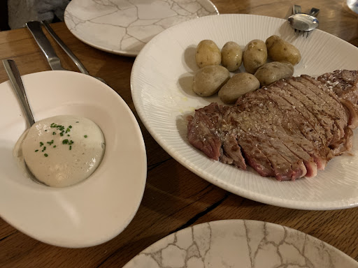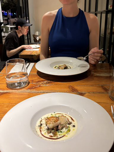 The chef of this restaurant is on their way to achieve a Michelin star that is for sure however some of the dishes need to be refined to get rid of the rough edges on the flavours. We ordered cold gazpacho to start with. It was incredible. The coconut icecream in the centre with the cured tuna cubes were music to my taste buds and the soup was bursting full of flavour. The goat cheese dish can be improved however though, the sauce underneath the walnut did not pair well with the goat cheese in my opinion and the server asked us to wait before diving into the dish to allow the cheese to soften in due course. The cheese did soften after a bit but id prefer if the cheese was already at room temperature and soft when served. The steak was cooked to perfection! The blue cheese foam was a nice pairing to the meat however id like some cooling elements in this dish to counter the fatty potatoes, beef and blue cheese foam sauce. However overall it was an amazing experience and would definitely recommend this restaurant. Last but not the least the service was excellent with friendly waiters and waitresses. And the decor in this restaurant...