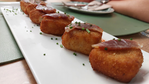 Read moreA ver la comida estaba buenas, pedimos papas bravas q no las recomiendo (sosas y secas, con mayonesa y picante, me refiero q no es una salsa brava), pavia de merluza con papa ali-oli q lo recomiento totalmente muy buena y las papas super ricas en este caso, las croquetas de serranito estaban espectaculares, muy muy ricas y grandes, merecen la pena, almejas a la marinera...super ricas y rebañas el plato, lagartito muy bueno de sabor para mi gusto con mucho nervio pero de sabor bueno y las papas q lo avompañan eran panaderas y muy ricas también, y por ultimo y fue lo mas decepcionante a la par q lo mas caro calamares fritos q era pota, y estaban chiclosos, sabor fuerte (no por malos si no por la fritanga) y nos costo 36€ [va al peso pero nadie t pregunta cuanto peso,(55€/kg)] de hecho eso sobró y no fue lo ultimo q nos sirvieron. La atención estupenda, super amables, muy atentos, explican bien los ingredientes de los platos y siempre sonríen Los baños muy aseados y olian bien, con papel higienico y jabón El ambiente es muy agradable luz tenue y da sensacion de calidez. En general volvere pero no pedire calamares-pota y mirare mejor la carta ya que las cosas al peso como q no me molan y menos si no me preguntan. Probaré cosas q me quede con las ganas y q espero esten ricas. Cenamos 4 personas todo a raciones (era obligatorio) y nos costo 110€ para el sitio donde está barrio normal me parece caro ya que hay varios platos subidos de precio de calidad cuestionable. No añado fotos porque se me...
