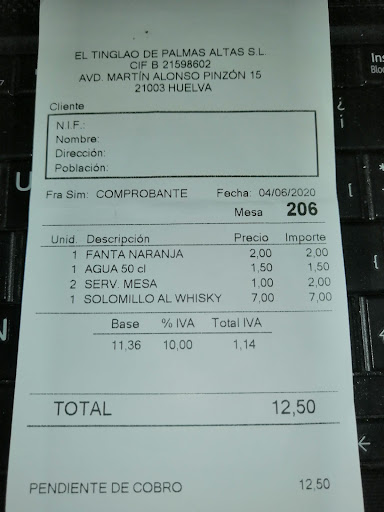 EXPERIENCIA PESIMA. NO PIENSO VOLVER. Hemos ido a comer hoy a medio día y tras esperar mientras el encargado y los camareros daban vueltas entre las pocas mesas, nadie limpiaba las que quedaban libre y habia cola esperando. Cuando finalmente nos han dado la mesa tras pasar un spry con papel sobre la tapa de la mesa, no podíamos descargarnos la carta en el movil. Se lo indicamos al responsable y nos responde que nos trae una carta. Nunca la trajo. Nos toman nota de la bebida y nos la traen.Por fin podemos descargar la carta y pedimos: una ración de patatas aliñadas, solomillo al wisky y carrillada. Al momento nos pregunta el encargado si llevamos mucho tiempo esperando la comida, unos minutos le respondo. Nos traen el solomillo, la ración, pero no tenemos platos ni cubiertos ni servilletas ni pan... lo pedimos, nuevamente al encargado quien se va a buscarlos pero... tenia algo mejor que hacer, charlar con los dos caballeros de la mesa de al lado y nuestra comida se enfria. Por fin nos ponen el servicio y, madre mía, el pan con un aspecto deformado de o recalentado o metido en una bolsa de plastico anudada.... y del solomillo que decir, no hay un plato mas incomible: 5 pedazitos de carne embadurnados en una salsa espesa gelatinosa y echada encima a cazos sobre unas patatas fritas y recalentadas incomibles como trozos de corcho. Nos tomamos la carne y nada, que no viene ni el aliño ni la carrillada. Después de esperar y esperar, me he levantado y le he solicitado al encargado que me de la cuenta y anule la comanda y que lo unico que nos ha puesto es incomible. Me dice que no nos va a cobrar las patatas. Vuelvo a mi mesa y me trae un camarero la cuenta que adjunto: me lo cobran todo, por supuesto incluido el servicio del pan y las patatas, por supuesto el encargado ha enviado a un camarero a traer la cuenta porque a el se le debe haber caido la cara de verguenza. Pago la cuenta, no sin antes de recordarles que quiero mi ticket para llevarmelo junto con el cambio y me marcho a otro establecimiento de enfrente para comer..... Mientras ocurre todo esto, a la mesa de al lado le han cobrado refrescos de mas, el detalle de la nota era erroneo y todo ello con un ir y venir del camarero hasta la barra mientras el encargado le va dando instrucciones sin dar la cara tampoco. Ah por cierto en el otro establecimiento me he encontrado a otras personas que me han preguntado que no ha pasado y que tambien al ver el servicio, la comida y demas, se han levantado y se han marchado sin comer. Menos mal que en el Lagoh hay mucho sitios donde comer, porque lo que es volver al Tinglao ni me lo planteo ni lo recomiendo a nadie. Comida mala y pesimo profesional al cargo: los camareros son solo unos...