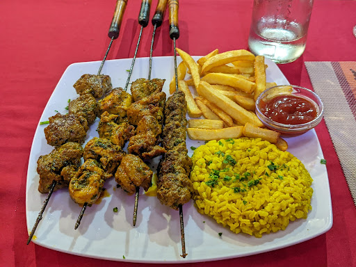 Before rating the food, I want to say that Hamza was an exceptionally nice young man. Now for the food: Harira and all lamb-based Tajine were not available. No fresh juices either. That's fine, we were hungry and looking for halal food. My wife ordered a mixed plate of kebab (beef and lamb) and tawook. It comes with fries and rice. I ordered mix beef tajine that includes prunes, apricots and almonds. I don't know how to describe the experience. My wife's food came first (apparently they don't time the plates to come together so you have to eat separately!). Everything in her plate was cold except the fries that were fresh hot. She had to send it back for reheating! My Tajine came very hot about 10 minutes later. It was clearly assembled using precooked ingredients and overheated so that i don't complain like my wife did. There was barely any sauce in the dish and everything tasted bland. It's nowhere close to the same dish I had in marrakesh many times 2 years ago. Sorry Hamza but I know it's not your fault. I don't know what the other positive reviews are about (that's why we went there in the first place but boy this was disappointing). The moroccan...