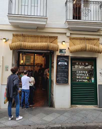 This is the second time we visited the new Filo sandwhich bar during our stay in Seville. Note the old Filo is in the same road, but much smaller. Our first visit was for a birthday breakfast and it was very enjoyable. A nice range of foods and beverages. Vegetarians are well catered for and even some Vegan dishes are available. It is an indoor facility with air conditioning and very popular due to its excellent ratings. It is self service, so you find somewhere to sit and then order at the desk. You are given a device that lets you know when your food or drink is prepared and available for collection. The food has been consistently innovative and tasty and coffee is nice too. Staff very helpful and many of them can speak English, thankfully. We decided to have a leisurely last day so we have ordered several times to enjoy the food drinks and facilities here on the upper floor which is also where the food...