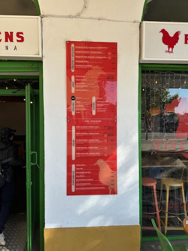 Read moreOne of the best chicken experiences we've ever had! 🌟🌟🌟🌟🌟 I recently had lunch at Five Chickens in Sevilla with my husband, and it really exceeded our expectations.🍗 We ordered two 1/2 Pollo a la Brasa plates, with me swapping out the fries for white rice. 🍚 🍟 The Peruvian chicken was cooked to perfection—juicy, tender, and bursting with authentic flavor. 👌🏽 The two sauces that accompanied the dish were simply amazing, with the yellow spicy one being my favorite (adding just the right amount of kick without overpowering the natural taste of the chicken). 👌🏽 What truly set this visit apart was the warm and welcoming atmosphere. The owner personally came to our table to greet us and make sure everything was to our liking, which made us feel truly valued as customers. 😍 If you’re in Sevilla and looking for an unforgettable Peruvian chicken meal, Five Chickens is definitely the...