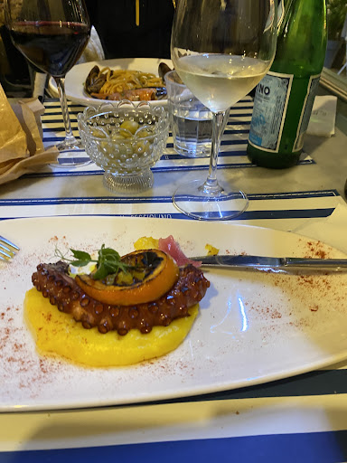 Read moreAs real foodies, let's say this. The staff was just working on routine, there was not any personal touch or atmosphere created by them, the youngest waiter was the best, but the more experienced staff members hardly smiled until we tipped them properly! The food, well the state, oysters were fresh and tasted as expected, the anchoa on toasted bread and tomato was blend, watery and had no flavor, the octopus starter was good. The Linguini frutti di Mare was blend and below average compared to many others we ate. Two Italian women eating the same food next to us, had the same experience! My grilled octopus on a bed of mashed Azafran potato was nice, but very little food and less good compared too many others. price-quality should be improved and the pride in Italian style seafood boosted. The restaurant itself looks nice, but come on, but some pride and effort...