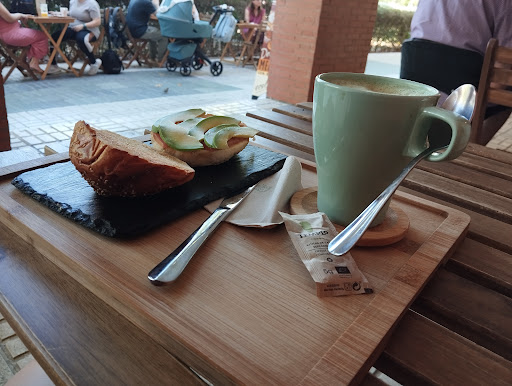 Read moreEl lugar es muy acogedor, mesas de madera para dos personas fuera y un interior agradable. Se pide con el código QR que hay en las mesas y luego una camarera trae el pedido en una bandeja. Hay muchas opciones de té, café e infusiones así como de panes ecológicos y tostadas que son completamente personalizables. Las camareras son amables. Me he pedido un pan brioche con tomate y aguacate espectacular, ha venido caliente y tostado los justo, buen sabor y textura. Y un té matcha con leche de avena que llevaba algún tipo de endulzante o sirope que no he pedido personalmente, asumo que lo hacen así porque hay mucha gente a la que "le gusta el matcha" pero sólo puede tomarlo si tiene algún sirope o endulzante que cubra el sabor. Ya digo que no lo veo mal, pero debería especificarlo en la página a la hora de hacer el pedido porque a algunos sí nos gusta el sabor más "puro" del matcha. Me he tomado casi todo pero al final el endulzante sabe demasiado y para mí es intomable, por eso quito una estrella. El total ha sido 5.90 euros, que teniendo en cuenta que tanto el matcha como el aguacate son productos caros es un muy buen precio (esto mismo con menos calidad me ha llegado a costar más de 7 euros en otros locales). Definitivamente volveré, pero no pediré el matcha o me aseguraré de que sólo sea matcha y leche...
