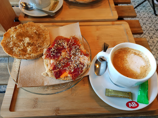 Read moreTenía muchas ganas de parar aquí. Conocía el pan porque tienen dos panaderías (sin cafetería) en la Gran Plaza y al lado de las Setas (calle Alcázares). Éramos tres personas y pedimos un mollete multicereales con mantequilla, otro mollete con aceite y jamón y por último un mollete de cúrcuma y naranja (que el pan realmente sabía a naranja) con hummus, aceite y tomate. Fue una combinación arriesgada, pero me gustó mucho. También pedimos tres cafés. Como es de esperar, el pan que tomas en el desayuno lo tienes disponible para comprar (en bolsa de 4 molletes). También tienen pan brioche y rebanadas para el desayuno y piezas de pan grandes a la venta. En el interior del local tienen mesas y tienda de delicatessen. Fuera, hay varias mesas bajo un soportal (genial para cuando llueva) y mesas al aire libre. Los pedidos del desayuno se hacen mediante un código QR, un adelanto, porque solo había dos personas al frente del negocio y las pobres estaban muy atareadas. Desayunamos por unos 10€. La zona para aparcar no está mal, aunque dependiendo del día te puede costar algo más. De todas formas, hay muchas calles por allí y hay un Mercadona justo al otro lado de la calle con parking subterráneo. Repetiré seguro, me quedan varios tipos de...