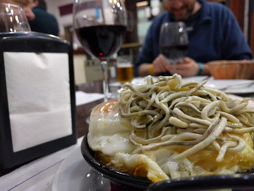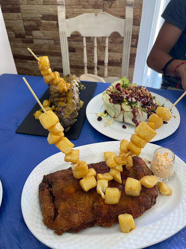 Read moreNOT EXAGGERATING WHEN I SAY THAT I HAD THE BEST MEAL OF MY LIFE HERE. There are two parts of any good restaurant experience: quality food and quality service. This warm, friendly family-run restaurant has absolutely excelled in both. We asked for recommendations and they suggested the three things in the picture to share for three people which was the perfect portion. On the bottom was Cachopo, beef with ham and cheese fried in breadcrumbs. Absolutely phenomenal. On the left is Costillar: pork ribs cooked with a mustard and honey sauce. Amazing. On the right is a goat cheese salad that was soooo tasty. After spending weeks in Spain, eating tapas and steaks and all kinds of food from all over the country, I can say with absolute confidence, that this was the best meal I've had in this country. Real authentic Spanish food from the north of Spain. Also, the tiramisu after the meal was mind-blowing. Portion was also very big. As for the second component of quality service, this family was practically ready to adopt us as their sons by the time the meal was over. They were so generous in a number of ways because their mantra is "when we give, we give everything we have and when we feed our patrons, we make the food as if we were to eat it". And that's what made it the best meal I've ever had in my life. If you step foot in Seville, it is practically sinful not to eat...
