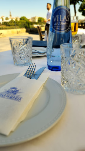 We decided to break away from our tour group for a night on our own to celebrate our anniversary. The place we decided to go to was La Casa Maria, make sure to make a reservation. We showed up 16 minutes late and almost missed out on our table! But the hostess still had one table for us in the shade on the patio (on the river walkway) across the street from the indoor restaurant. Sun was beginning to set off the river, and the temperature was beginning to drop from the 90+ temperature, which was terrific! Our photos show the area. After we were seated, Rafael de las Reyes and his runner/server Darlene stopped by and dropped off some bread and to see what we wanted to drink. We went with a local bottle of white wine recommended by their sommelier. Perfect addition to our dinner. We ordered the tomato appetizer, which was a huge 8 inch wide tomato smothered in olive oil and a little salt. It was perfect! My wife is not much of a tomato lover, so she went with the grilled artichokes. OMG, was it delicious in a white cream sauce with spices and paprika. While eating, our waiter kept bringing us bread to soak up the oil ad cream and also kept bringing us small pours of different aperitif wines to keep us busy and engaged. We went with the shrimp, cuddledish, and clams in a pasta palliela for two. It was very yummy! The drinks kept coming, and the meal was made even better by the staff who came and sang happy anniversary to us and brought us a glass of champagne! If you are celebrating or just want to enjoy a local Spanish meal. Make this your spot for dinner. We left just before 11 PM, and we had a wonderful meal and enjoyed the experience! People were just coming in for dinner at that time. Opened late and well worth the enjoyed atmosphere,...