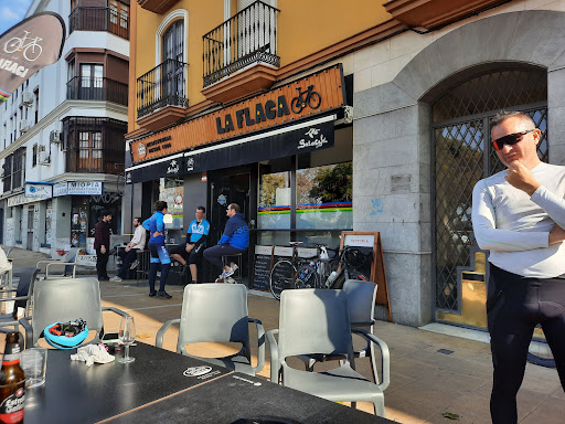 A CYCLING CAFE THAT NEVER SHOWS BIKE RACES! I have been here on several occasions (TdF, Giro..) hoping to catch a race and have a beer. They never have the the races on TV despite a large tv hanging on the wall inside the cafe (once they were playing surfing videos). I went by again today thinking that if they would play one race, surely it would be the tour of Andalucia. Wrong again! I asked the barkeep, in Spanish, if they would put the race on and she looked at me as if she had never heard the words "bike", "race" or "TV" before. "So you never play the races on TV?" I asked. "No" 8-/ As far as the cafe itself is concerned: -The beer is the same as you get in any other bar, nothing special here. I have not eaten so I can not comment on the food. -The cafe itself is nicely decorated but located on a very busy thoroughfare, so if you don't mind breathing exhaust fumes and listening to cars and busses drown out the sound of your conversation, this is your place. -The staff is generally dismissive, but that is pretty standard in Sevilla. They won't go out of their way to be helpful.