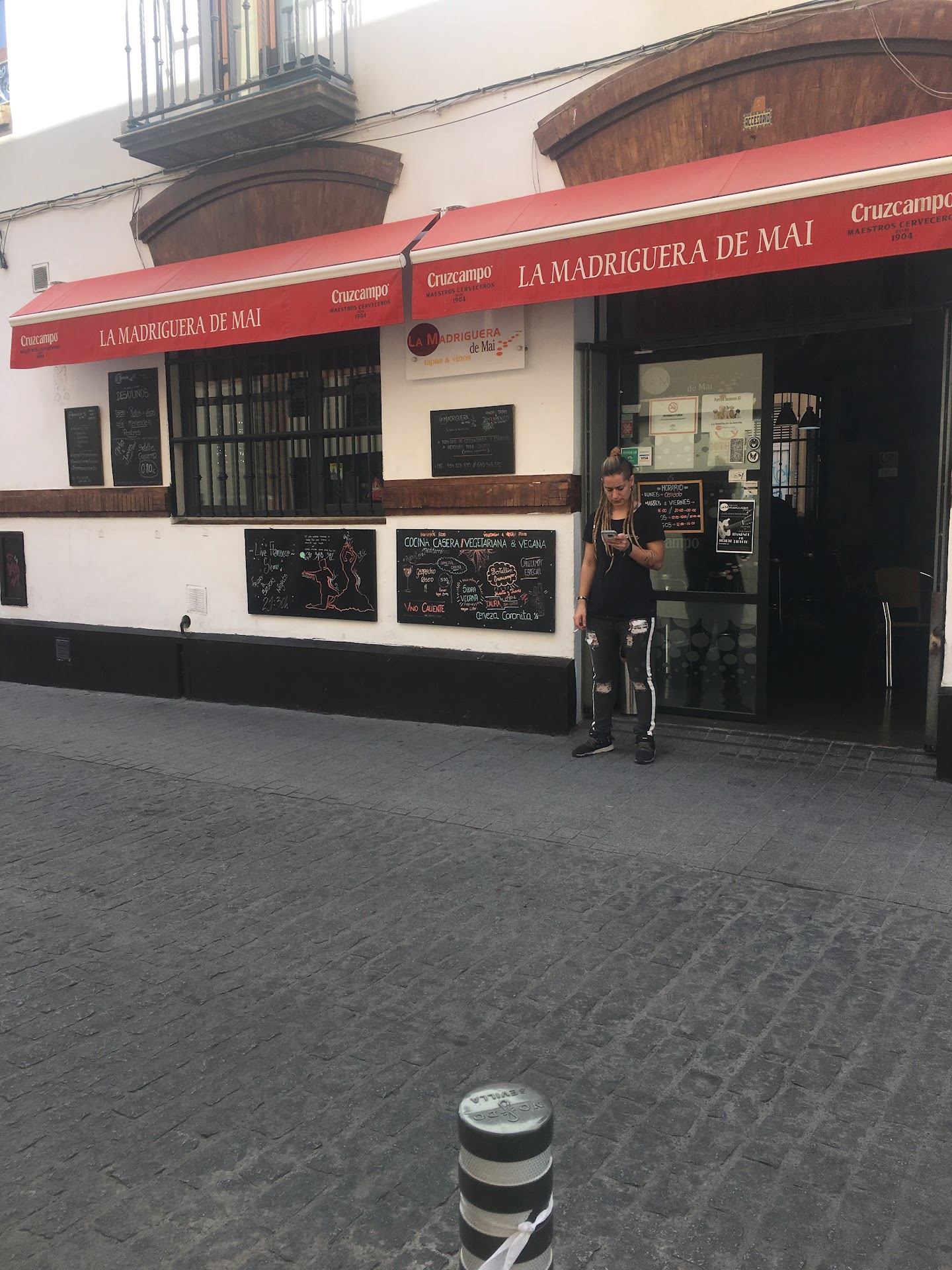 Her prices are ridiculously low (if it’s the first time you’ve watched a gin be poured in Seville, enjoy!) so tip well. She could make a killing charging for flamenco on Friday and Saturday nights as it is always fully booked and doesn’t.