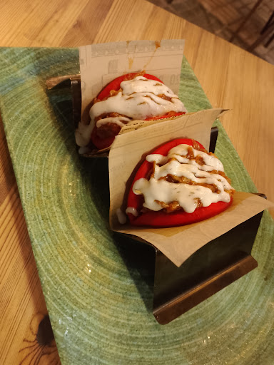Read moreNi lo voy a recomendar ni volveremos a ir. Local con una decoración chula, dispone de terraza y mesas interiores para comer. Es un bar con una intención en la comida bastante pretenciosa, que quiere dar un servicio de restaurante cobrando como tal pero sin tener calidad para ello. Nos pusieron el servicio y el pan era de un día anterior por lo menos, el problema es que lo tienen allí al aire junto la puerta de salida... De lo que pedimos lo único que se salva son las croquetas de boletus con mango, luego pedimos el Pan Pita con carrillera y queso de cabra donde el pan parecia un bollete sin hacer. Pedimos El Pan de la Casa, que el jamon y los huevos estaban buenos pero el pan era pan de molde del Mercadona. El Solomillo Trufado, es un filete que tiene bastante buen sabor sobre un pure de patata bastante insípido que no recuerda ni al sabor de la trufa, y no sabes si comer juntos o por separado. Las gyozas son de pollo con mucho curry fritas. La cola de toro viene con patatas fritas congeladas y la carne estaba buena. Y por último uno de la mesa le dió una oportunidad a la tarta de lotus que habia en la carta y cuando llegó solo la probó y la dejó, es un bizcocho de nata al que le han echao una capa de lotus y decoración para que llame la atención. Y damos gracias de que no se nos acerco el "jefe" porque a las demás mesas le estaba comiendo la oreja que no veas, bastante intenso Las camareras un 10 muy...