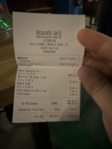 Read moreHay proyectos gastronómicos que aun calculados al milímetro no consiguen pasar de los deseos. Aquí, en Leartá, la inteligente propuesta que Rita y Manuel desde la cocina, y Nazaré y Luna en las sala y la parte de beber, ponen en pie con brillantez y reto ante una ciudad de gustaos muy clásicos, y generan un espacio donde no sólo la cuidada atención que han dedicado al pequeño espacio, decorada con objetos que hablan de un sur de espíritu delicado y hermoso, y nada de falso folclore tipificado que se prefabrica para los millones de turistas que año a año invaden la ciudad hispalense. Leartá ejecuta un único menú degustación de once pases, a un precio de 72€. Una bien elegida carta de vinos, del sur, nacionales o internacionales, que van de generosos a bien seleccionadas botellas de espumosos, blancos, rosados, tintos o dulces, que harán la felicidad de quien quiera navegar por ella. Precios altos, pero que apoyan en un servicio magnífico de copas de la casa Chef& Sumiller que ayudan a disfrutar más de lo elegido y poder percibir los matices que encierra cada botella. Es importante la cuchara en la propuesta. Ejecución brillante que no baja en ninguno de los platos por los que transita el menú. Fondos/salsas/consomés que hablan de conocimiento técnico impresionante, de ejecuciones intachables e inolvidables, como ese tomate tratado como si fuera un lomo de orza con un delicado helado de primorosa manteca y aceite de perejil. Plato a plato van abriendo horizontes de una cocina popular, que ya sea en guisos marineros o ante confitados de carnes, deja elegancia, sutileza, ligereza. Platos inolvidables. Una manera de cocina absolutamente primorosa y que nunca defrauda. Ni en la vertiente salada ni en la dulce. Un escándalo de sabor ante los que el comensal sólo debe de dejarse llevar y participar entregando todos sus sentidos. Para poder alcanzar las escalas que lleva este viaje en su amplio recorrido. Vajillas hermosas y atención delicada. Una combinación demoledora que hace que la experiencia Leartá sea inolvidable. Para comensales que quieran ser soberanamente felices y asistir a lo que está llamado a ser no sólo una de las joyas de Andalucía, tierra que en estos momentos posé un cada vez más amplio número de locales que bien merecen un viaje, sino a sentir que otra manera de entender la...