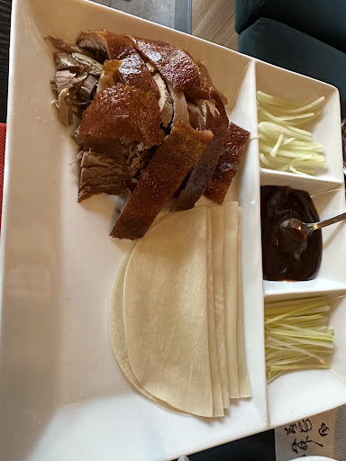 PEKING DUCK The duck was perfectly prepared, the meat is deliciously flavored and tender, but the SKIN was thin and crispy. Sooo tasty. We built each bite with a thin pancake, piece of duck, sweet/salty black bean sauce, julienned scallions and cucumbers. All the flavors and textures came together perfectly!