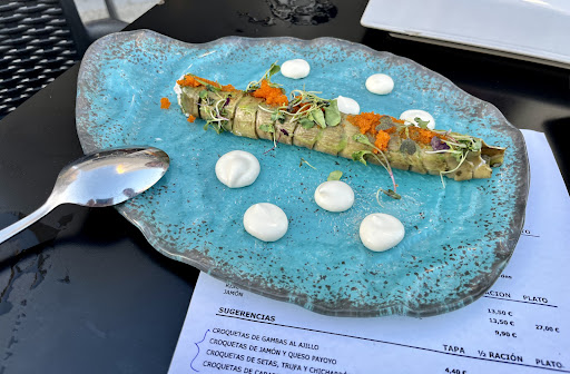 From the very beginning we had a lot of fun ordering, thanks to our waiter Rafa, who explained all the dishes very well, adding a touch of humor here and there. The whole menu looked amazing so we went for 5 different dishes to create almost a “degustation” experience: patatas hojaldradas, canelón de aguacate, tartar de steak sobre pan de cristal, ortiguillas (a special from that day), and all the possible flavors of their croquetas (que no me falte mi croqueta!). The food was delicious and super aesthetically served - I’m adding a few photos of the dishes so you can see for yourself.