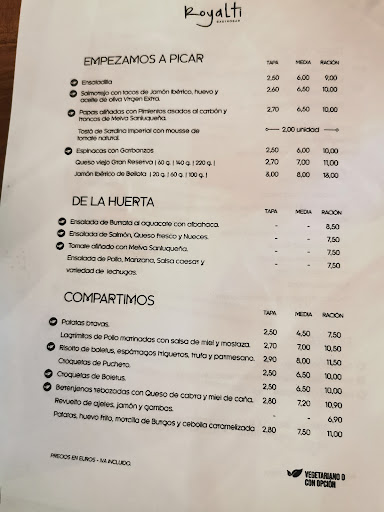 Como se puede ver, este lugar ofrece cocina tradicional y no tan tradicional, dando opciones para todos los paladares. La cantidad de platos (tapas y raciones) es adecuada.