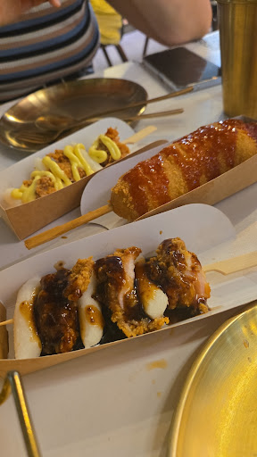 The food was also delicious! They had a wide variety of menu items including even ramen bowls in addition to the Korean dishes. We decided to get one of the combo items (2 beverages, fried chicken and fried tteokbokki covered in two sauces), bibimbap, and the corn dogs Korean places are usually known for. Ordering was easy as the menu and ordering food is done through QR code and placed online. And everything came out super fast, though maybe also because we arrived so early for lunch xD