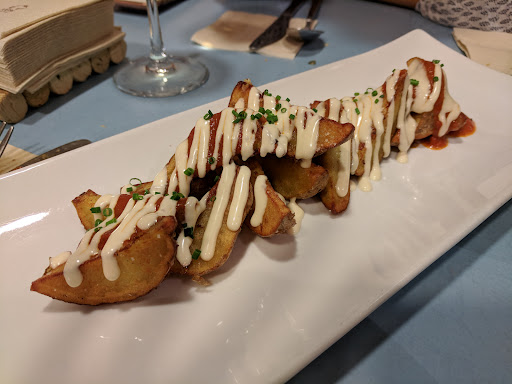 Tienen una gran variedad de vinos. Distribuidos por zonas geográfica. Es recomendable dejarte aconsejar por el personal si eres de los indecisos o simplemente eres Libra como yo. En cuanto a la carta, mamma mia. Todo está delicioso. Te voy a recomendar tan solamente unas pildoritas. En primer lugar las patatas fritas con mayonesa de cilantro, espectacular. En segundo, las berenjenas con salsa de miel de caña y queso, brutales. La tercera te la doy a elegir entre una mini hamburguesa o el steak tartar. Y para terminar, los postres. Tienen un brownie que te especifican tarda 15 min en hacerse, merece la pena. Es habitual encontrarte con nuevos platos. No paran de innovar.
