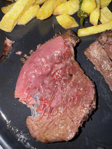 For main course we had a Chateaubriand beef (simple beef with fries). I asked for medium and as the pictures show it was rare at best. At one point I swear I could hear my steak MOO. We also had the burger. More correctly TRIED to have the burger. The beef was overcooked, the bread was dry and the vegetables were probably fresh last year when they were bought. Our last member had papperdelle pasta. Overcooked pasta. The meat had almost no sauce and what little sauce was present had diminishing taste.