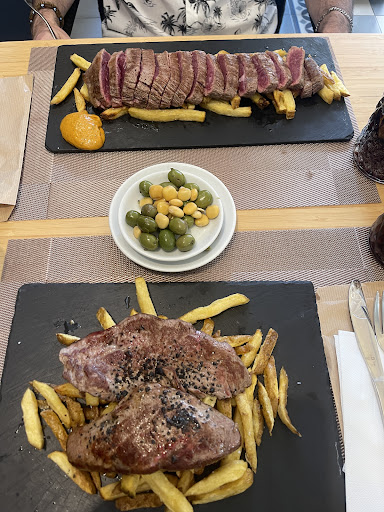 Unfortunately, we didn't like the food. We ordered 4 medium rare steaks, 2 of them were medium rare and the other 2 were more rare which me and my husband highly dislike. The bigger issue was that on the steak there is some black salt (very expensive and less salty they said) which was actually verryyyyyy salty. We had to try to split the salt from the steak. We have ordered also lobster rice. Even tho it is probably common for Spain that for rice/paella, the price is per person, it would be nice to be mentioned into the menu. It wasn't mentioned and we paid almost 50 euros for this rice considering we took also steaks for each person. It wouldn't have been an issue if would've been tasty but it was THAT SALTY, we couldn't eat. It was a large 2 people portion because we split to all the 4 persons we've been at the table but neither of us was able to eat it. The fries and the sos which came with the steak were delicious. Also, sangria very good....