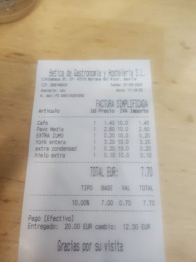 Read moreYa me habían avisado, pero quise dar una oportunidad para desayunar porque me coge al lado del trabajo. Después de estar un rato sentada esperando a que me atiendan sale la chica y va a la mesa de al lado que se acaba de sentar, cuando acaba le digo que si me puede atender u me dice que solo puede tomar comandas de 1 en 1, le comento que llevo esperando desde antes de que se sienten los de al lado y me dice que ella no puede hacer nada en tono chulo y muy mal educada. Obviamente me he ido a otro lugar a desayunar solo por la mala forma de contestarme, si hubiera sido más educada... un simple lo siento ahora le atiende no me he dado cuenta... pero la chulería me parece horrorosa cuando alguien te habla...