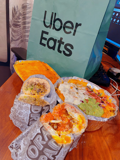 Genial! Todo riquísimo!! De entrantes pedimos los nachos y las patatas, fue una sorpresa las patatas que venían asadas y bañadas en bechamel y queso!! Súper diferente, original y exquisito! Los Nachos venían con varias capas de queso frijoles carne… una ración muy generosa y no se quedaba ningún nacho sin nada! Súper recomendados los entrantes, los burritos buenísimo pedimos uno de carne y guacamole y otro de arroz a la cubana, muy buenos y originales, tal vez me faltó el punto de sal pero por lo demás genial y muy recomendado. Lo único fue que tardaron 1h en uber eats una pena porque estábamos relativamente cerca!! Aún así...