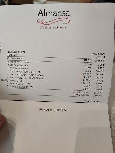 Read moreFuimos a almorzar mi mujer y yo, y la verdad que fue una decepción. Empezamos por unas croquetas, que, costando 12€, no decían nada... Sosillas sin más. Después la ensaladilla de bogavante que, a mí, particularmente no me gustó nada. Seguimos por el plato de jamón (24€), que de sabor estaba bien, pero de corte... Madre mía... Había trozos de casi un cm cortado, lo que hace que te cargues el producto. Importante que si van a cobrar 24€ por un plato de jamón, sea eso, un plato de jamón. Y vamos con el plato principal, la gran decepción... El wagyu ibérico. Pedimos el de Kobe, que lo tienen en carta, y casualmente, no lo tenían... No sé si el poner eso en carta es estrategia o no, pero después de ver lo vivido, mejor que no lo tuviesen. Pedimos el wagyu en su punto +, vino poco hecha... No es problema, porque se mandó a pasar un poco más... Cuando ya vino en el punto que habíamos pedido, empezamos a comer y tuvimos que pedir sal, porque la carne NO SABIA A NADA. Pero a nada... Como si comiera un filete de pollo. Estás pagando 100€ el kg de wagyu ibérico y que no sepa a nada la carne... Fue decepcionante. La respuesta del camarero fue, que como ya habíamos comido, que no podía cambiarla... Que si se lo hubiera dicho antes nos lo cambiaba por otra cosa. En el local hacia una calor impresionante, y la respuesta de la camarera cuando se lo comentamos fue que, no se podía poner más fuerte y que la culpa de nuestra calor era el vino que estábamos bebiendo... Desastroso total. No volveré, y evidentemente, a quien me pregunte, le evitaré ir allí, porque en Sevilla hay mejores sitios para comer carne.