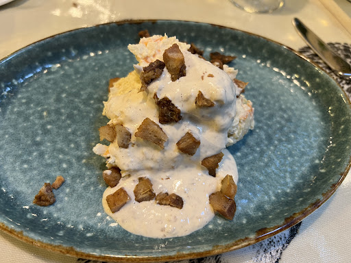 Read moreWe do not understand how this place has such good ratings - our experience was very disappointing. We had the tasting menu, which started with a potato salad that was drowned in mayonesse. The second dish was a tomato soup that tasted like a cheap Lidl sauce - no flavour at all! The octopus that was in the soup was definitely not fresh and ruined everything. The third dish - croquettes- were so fattening that after we were basically not in the mood to eat anymore. The following dish was a fish that was totally oversalted, which was only toped by the overcooked duck that concluded the disaster - We kindly declined the desert… At least the wines that came with the dishes were good! The experience is hard to explain since they do seem to have very good ratings overall! It looked as if they had a major issue in the kitchen or with the cook that evening (16.04.2022) which was noticeable by the nervous service personal and strange appearance of the kitchen that looked as if something was...