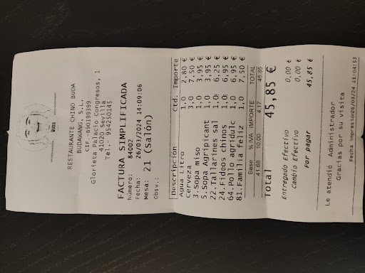 Read moreLlevo 21 años siendo clienta de este restaurante chino. Ya desde hace años no es lo que era pero el trato recibido está noche que hemos ido con nuestra hija nos ha dejado claro los motivos para no volver más. Tras salir del cine en zona este nos dirijimos al restaurante. Nada más sentarnos, a las 23:20, sin darnos si quiera las buenas noches, la camarera nos dice que cierran a las 24 h. Si hubiéramos entrado a las 23:55 lo hubiera entendido, pero aún quedaban 40 min para el cierre. Me parece de muy mala educación y de no tener ni idea de atención al cliente de tratar a una familia que viene a cenar así. Estaba clarisimo que no tenía ninguna gana de atendernos y que nos sentaramos a cenar, viendo que íbamos ademas con una menor. Así que nos levantamos de nuestra mesa y nos hemos tenido que ir a otro sitio a cenar, ya que nos han invitado indirectamente a irnos. Estamos en fin de semana, verano, no puedo llegar a entender como no ponen de cenar a una familia a las 23:20 de la noche. Hoy desde luego han perdido un cliente de más de 20 años. Como consejo les daría que contraten a personas que sepan algo de atención al cliente y te atiendan con una sonrisa, no con esa mala cara de amargados que te invitan a irte...