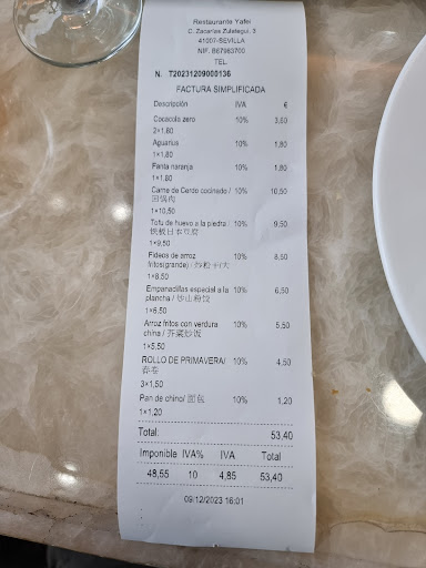 Read moreFuimos en familia, 4 personas, atraídos por las reseñas básicamente de Instagram. Lo mencionaban como de los mejores y más auténticos restaurantes chinos de la llamada chinatown sevillana. Fue un desastre. La comida es absolutamente mediocre tirando a peor. El clásico arroz tipo tres delicias muy pasado, era una plasta sin sabor y pegajosa. El cerdo agridulce malísimo. Unos minúsculos trocitos de carne con algo de piña, nadando en un plato de salsa con un color rosa. Malísimo. Las costillas de cerdo fritas eran huesos empanados y fritos. Un horror... Y todo así. Lo único que nos gustó fue la ternera con bambú y setas. La cuenta cerca de 100 euros, unos 95 euros. De beber agua, dos refrescos y 4 cervezas. Sin postre ni vino. Así que me parece caro para lo que suelen ser este tipo de restaurantes. Y sobre todo para la calidad de la comida que nos sirvieron. El servicio displicente y desganado. Bastante mal encarado. Y el ambiente dejaba mucho que desear. Todo muy descuidado y con aspecto de no estar muy limpio. No lo recomiendo y por supuesto no...