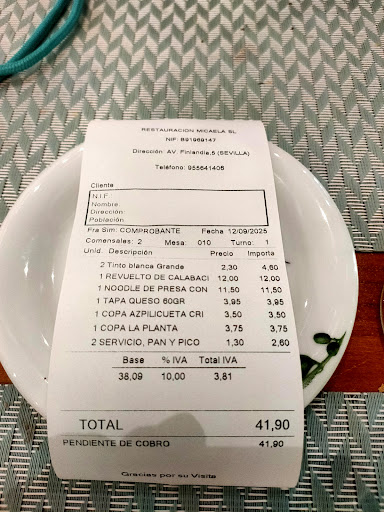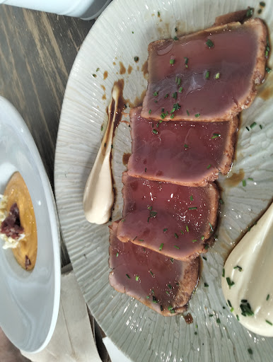 Read moreLa verdad, que la camarera un poco agobiante, quedaba dos dedos del vaso de bebida y ya intento cambiarlo, luego aún estábamos recibiendo a una amiga con un abrazo y la tía encima parecía que no se despegaba, no teníamos intimidad, después la comida ha bajado la calidad con respecto al de Felipe segundo que suelo ir siempre. Con respecto a la comida, el tataki no estaba muy bien de sabor, después me pedí una cazuela de gambones y siempre han puesto patatas fritas, en este lugar pusieron un puré que no estaba bueno y no se podía separar del huevo, incluyendo que no me gusta el puré y que no se menciona en ningún lado de la carta, deje la tapa entera y en ningún momento se ofrecieron a ponerme otra cosa a pesar de habérselo dicho que la tapa no era así. A partir de ese momento a mi me dejo en paz. Pero las otras dos tapas que se pidieron, ensaladilla estaba salada y el curry soso. Así ha sido exactamente mi experiencia. La verdad que no voy a volver a ir al restaurante de los bermejales. Al final me fui a casa con hambre a pesar de haber consumido 15 euros, solo me comí el tataki,...