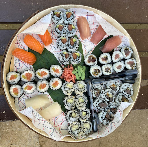 Sushi muy bueno y muy bien de precio. Despacho de sushi muy cerca de la calle Felipe II. El local es muy pequeño, aunque tiene una pequeña barra en la que puedes comer.