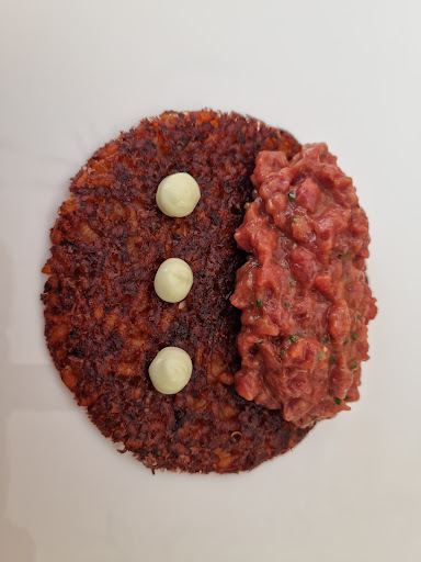 A few dishes were better: The oyster paired nicely with the seasoning (though the Iberian jowl felt overcooked and tasted like char siu) The scallops, cod tripe, and red mullet were the standouts. The Iberian tenderloin was flavorful.