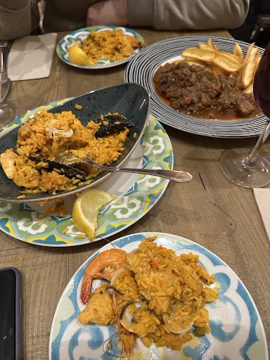 I came to Spain in the hopes of finding halal paella. My research before travel led me to a blog that spoke about this restaurant. After checking Google maps, I was happy to find out that this restaurant is in a savvy fashionable neighborhood in Seville and was near the river plus the bull fighting arena. They were clean, staff spoke English and our tableware was pleasantly colored with Andalusian patterns. All items were alcohol and pork free. Thankfully, mixed chicken and seafood paella was on the menu. We ordered that, croquettes, burrata arugula salad and fried seafood platter. The arugula and burrata salad and paella were perfectly made and delicious. My husband loved the croquettes but these were very filling for me. The mixed seafood platter was enormous and we couldn't eat much of it due to filling ourselves on paella, croquettes and salad. Also the dog fish and fried sardines may not be to everyone's liking. It was acquired taste. There was steak and grilled meats on the menu as well as dessert so I would highly recommend this place to travellers looking for halal food that is also authentically Spanish. Of note though, alcoholic beverages are served at...