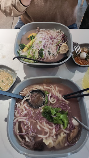 Read moreMe recordó enseguida a un restaurante asiático basado en buffet que había al lado del Juzgado Viapol hace 13 años, sólo que la calidad de la comida es notablemente mejor! La cantidad mínima que se puede pedir es de 400 gramos, y eso es mucho! Echas lo que quieres de los recipientes en tu cuenco grande, que por cierto, se ven fresquísimos! se lo pasas al empleado que te lo pesa en una báscula, pregunta qué tipo de caldo le agrega (yo pedí el de hueso de ternera, sorprendentemente bueno! me recordó a cuando era mucho más jóven y me cocinaba mi madre), pagar, y... en unos 10-15 minutos máximo, a disfrutar!!! Hay unos apartados a la derecha de los ingredientes, que es por si se quiere hacer una salsa extra, que le da un contraste magnífico al mismo plato. Es normal que sobre, ya que, mínimo 400 gramos de ingredientes mas el caldo, si le echas fideos por ejemplo, eso se hincha! Pero se permite llevar una fiambrera hermética para echar lo que sobre... a mí me sirvió también de cena...! El precio es de lo más razonable, y estamos hablando de muy buena calidad. Por cierto, no se preocupen si tienen algún tipo de alergia alimentaria, yo la tengo, y no hubo ningún problema, todos los ingredientes, y la manera de cocinar va todo por separado. Magnífico, sigan...